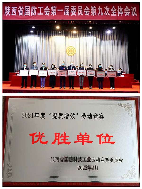3月29號上午,陜西省國防工會第一屆委員會第九次全體會議在西安召開,公司榮獲陜西省國防科技工業勞動競賽委員會授予的2021年度“提質增效”勞動競賽優勝單位稱號,公司劉學德同志榮獲2021年度“勞動競賽標兵”稱號,同時公司工會在國防工會2021年度重點工作完成情況考核中被評為優秀單位。